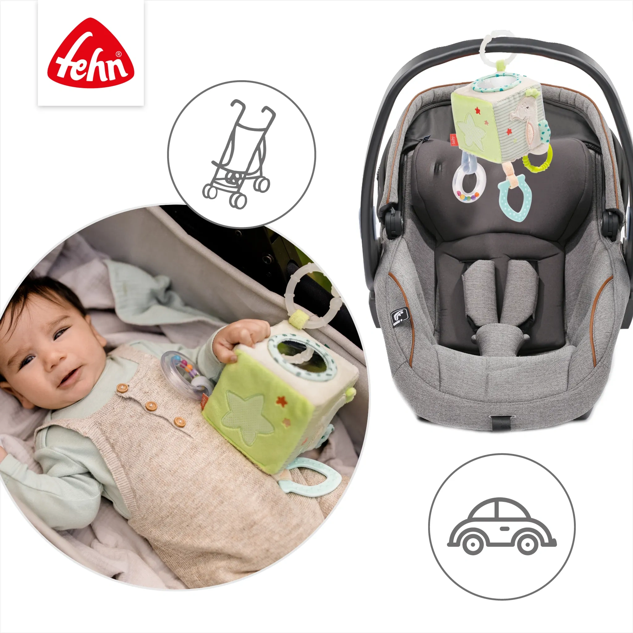 Befestigung | Mit C-Ring für Kinderwagen, Babyschale oder Bett |