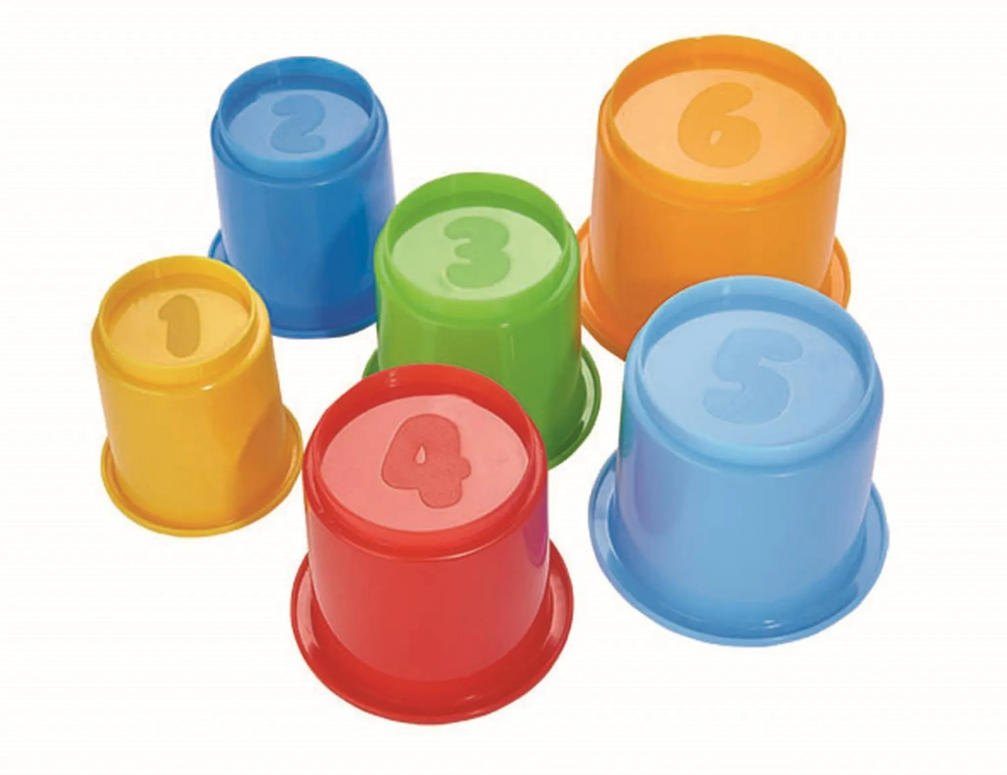 - 6 runde Steck- und Stapelbecher in bunten Farben