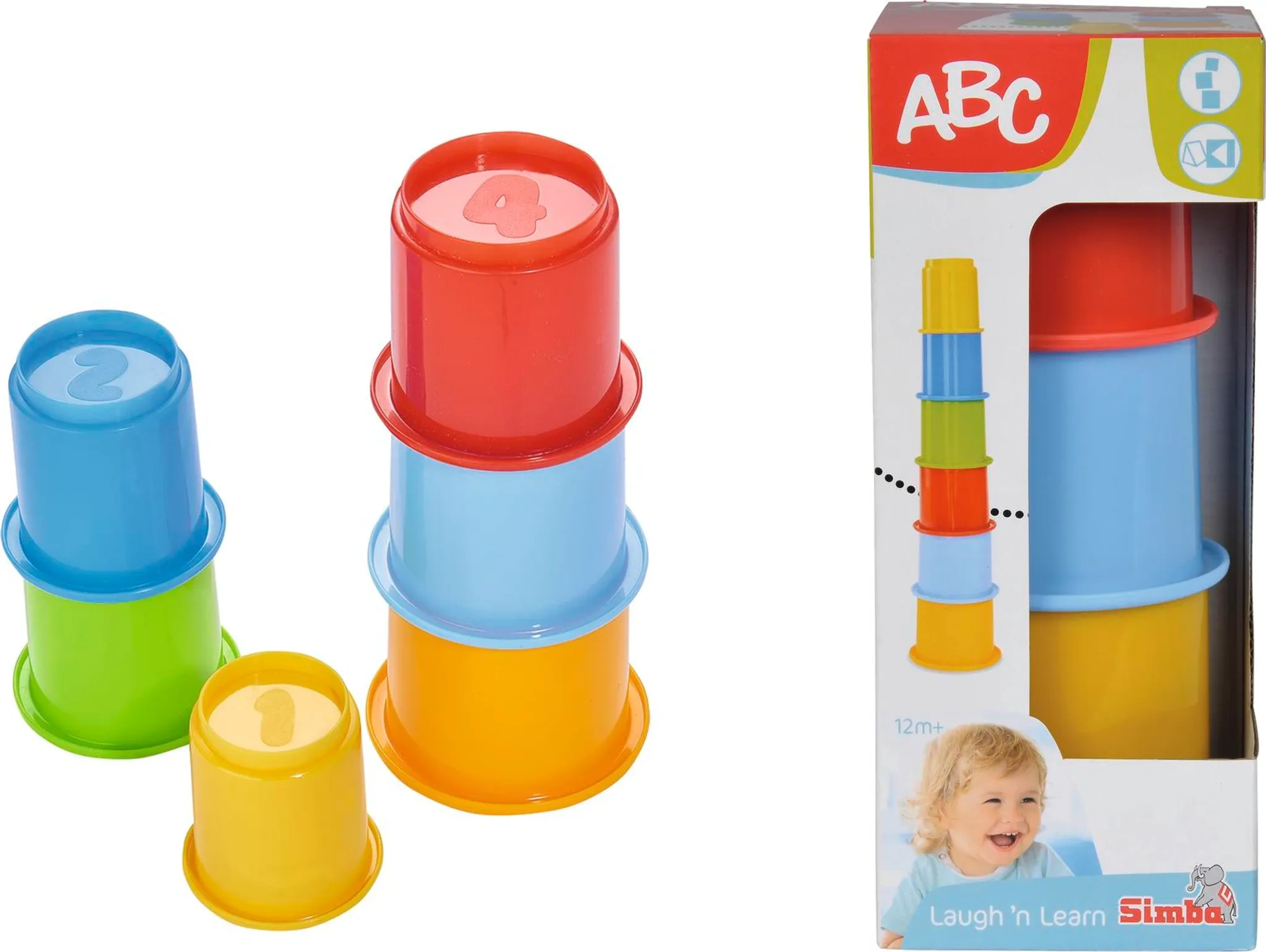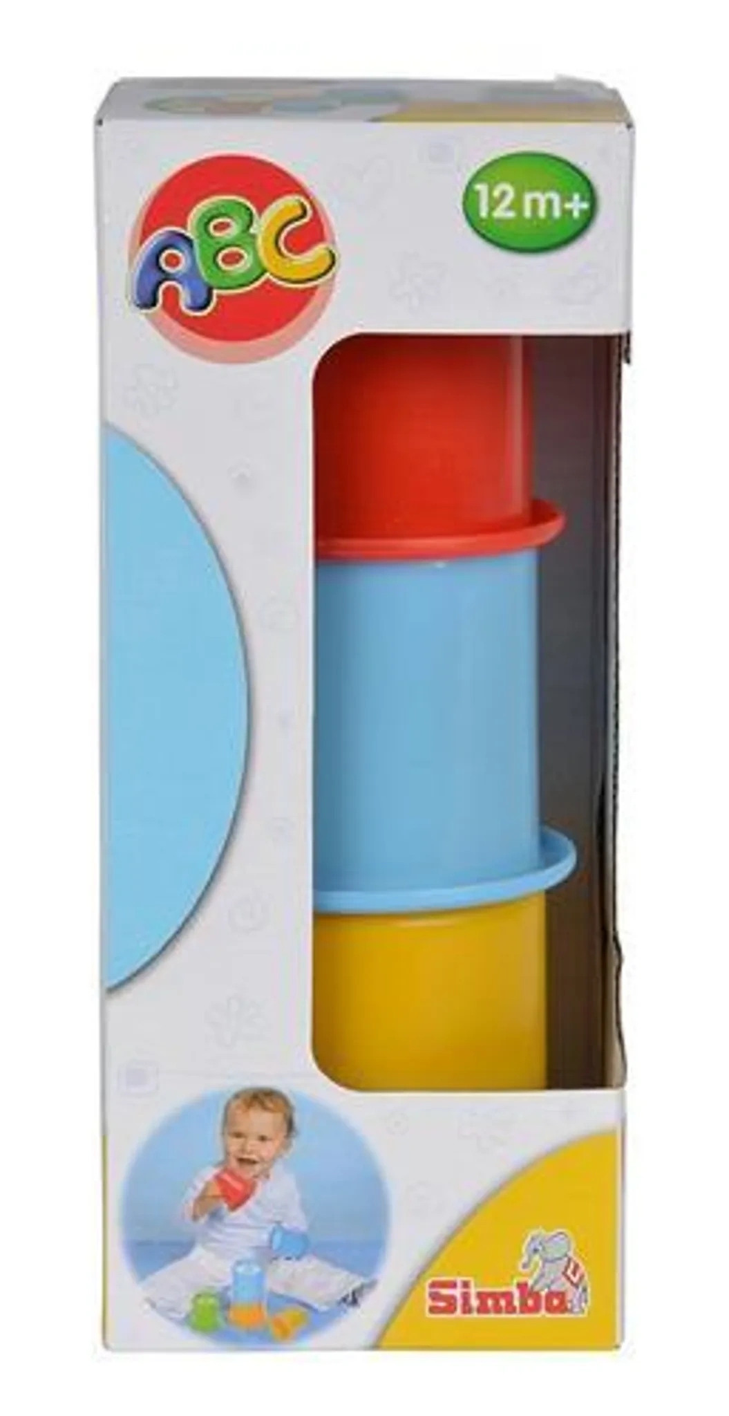 Lieferumfang: 1× Simba ABC Stapelpyramide mit 6 Steck- und Stapelbechern.